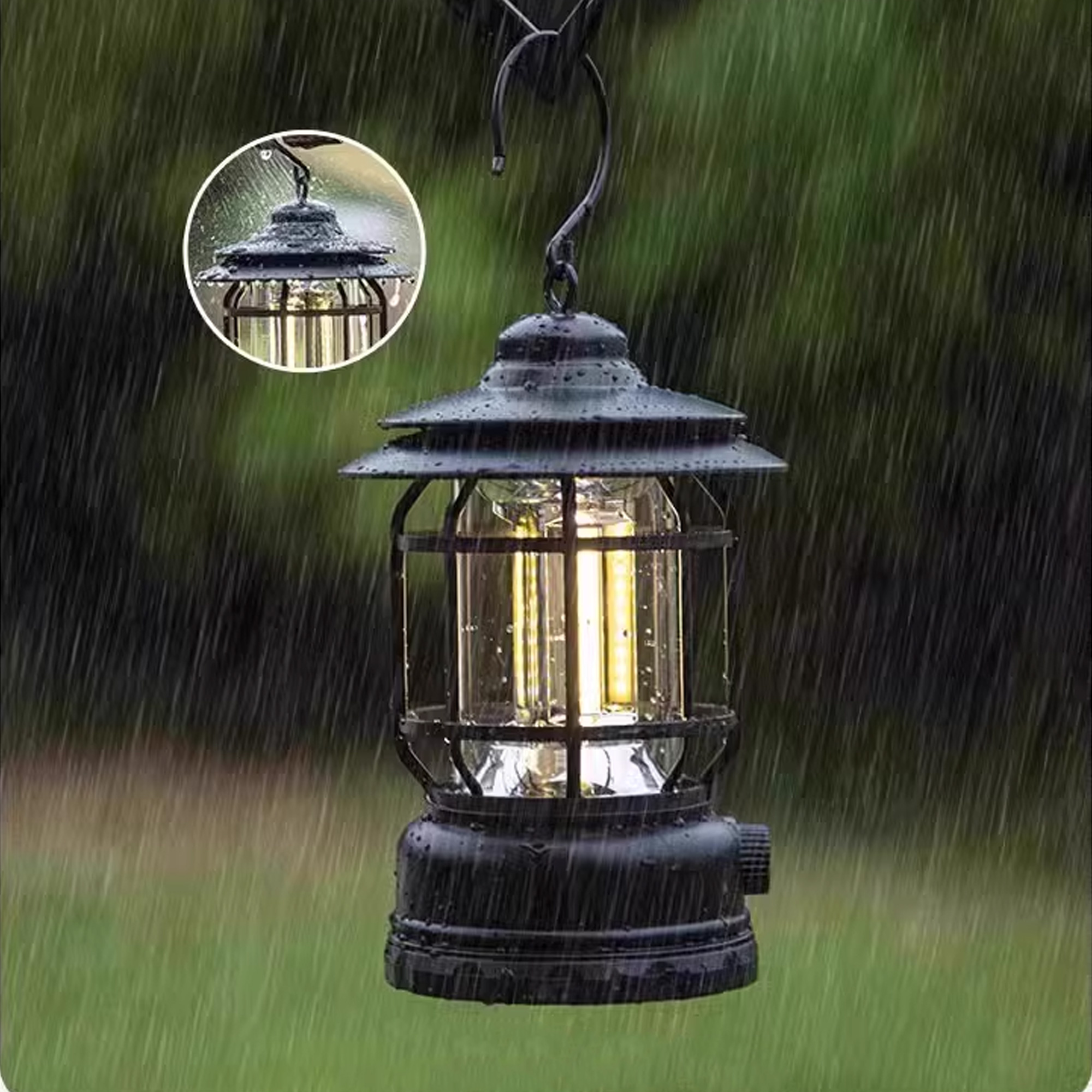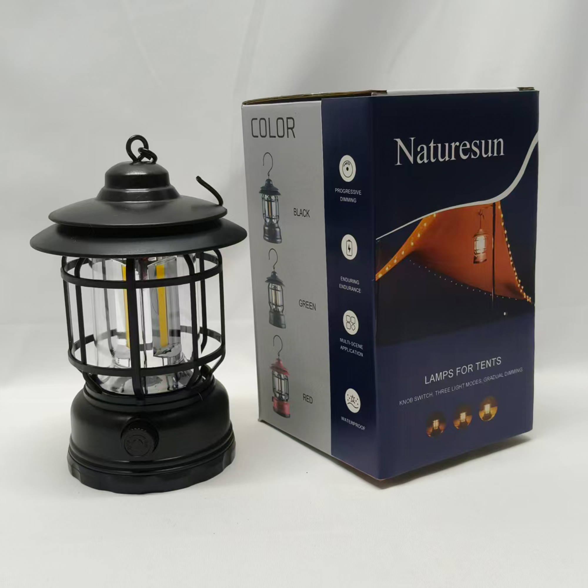 Naturesun-Lamps for tents,Camping Lantern Rechargeable USB Powered, Stepless Dimmer, Metal Retro Camping Light Waterproof Hanging LED Vintage Tent Lamp for Outdoor Hiking Fishing Emergency (Black)